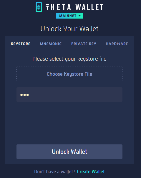Step 3: Log in to the Official Theta Web wallet. Make sure you have at least 40 Tfuel in your wallet. (Note: It will only cost about 0.5 Tfuel to move the token but the send transaction will not execute if the Tfuel balance is below 40.)